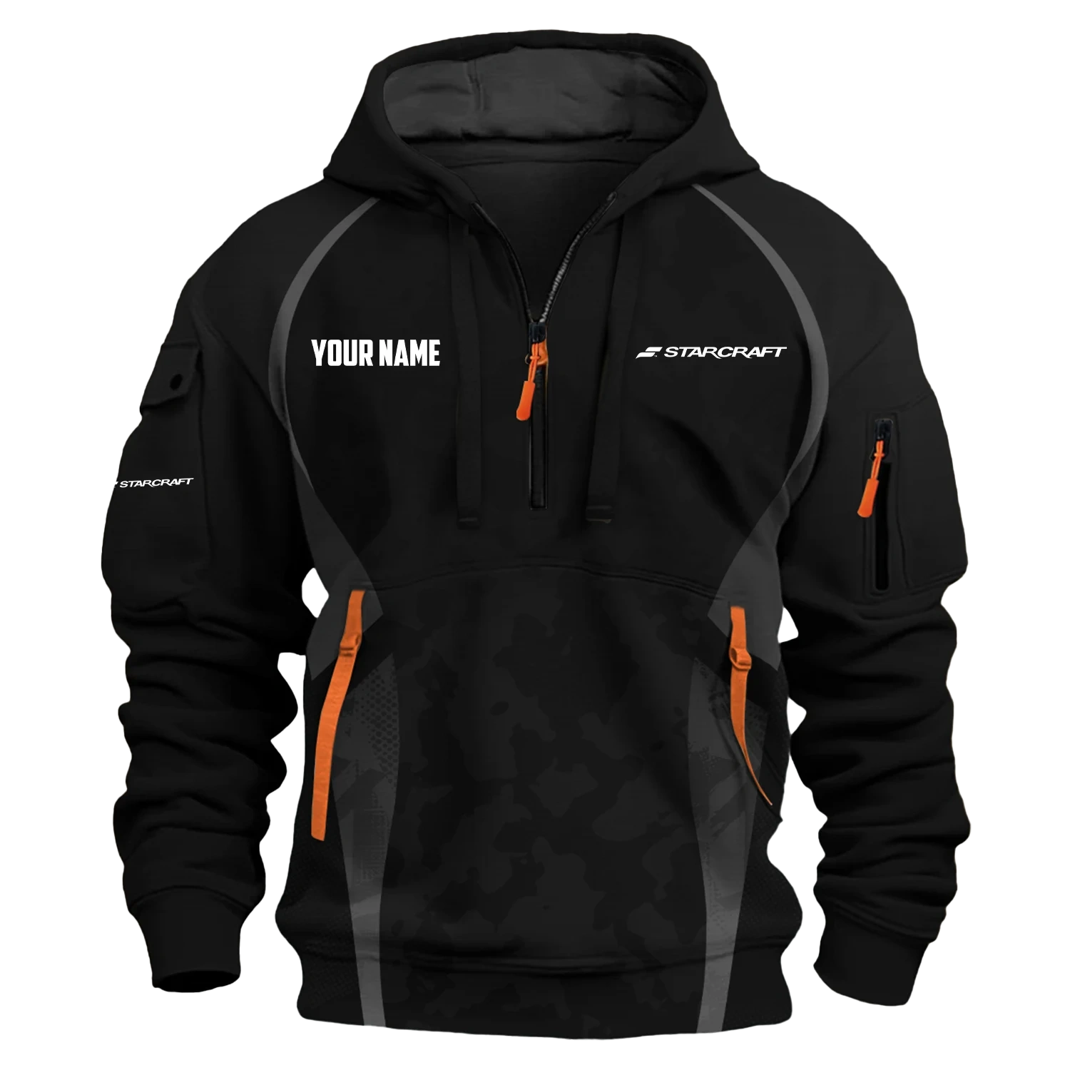 Elevate your wardrobe with our StarCraft hoodie half zipper, meticulously crafted for both function and fashion. Featuring long sleeves for added warmth and coverage, this hoodie keeps you comfortable in cooler conditions. The hooded neckline adds a modern, trendy touch to the ensemble, making it a perfect choice for those who appreciate a contemporary look.